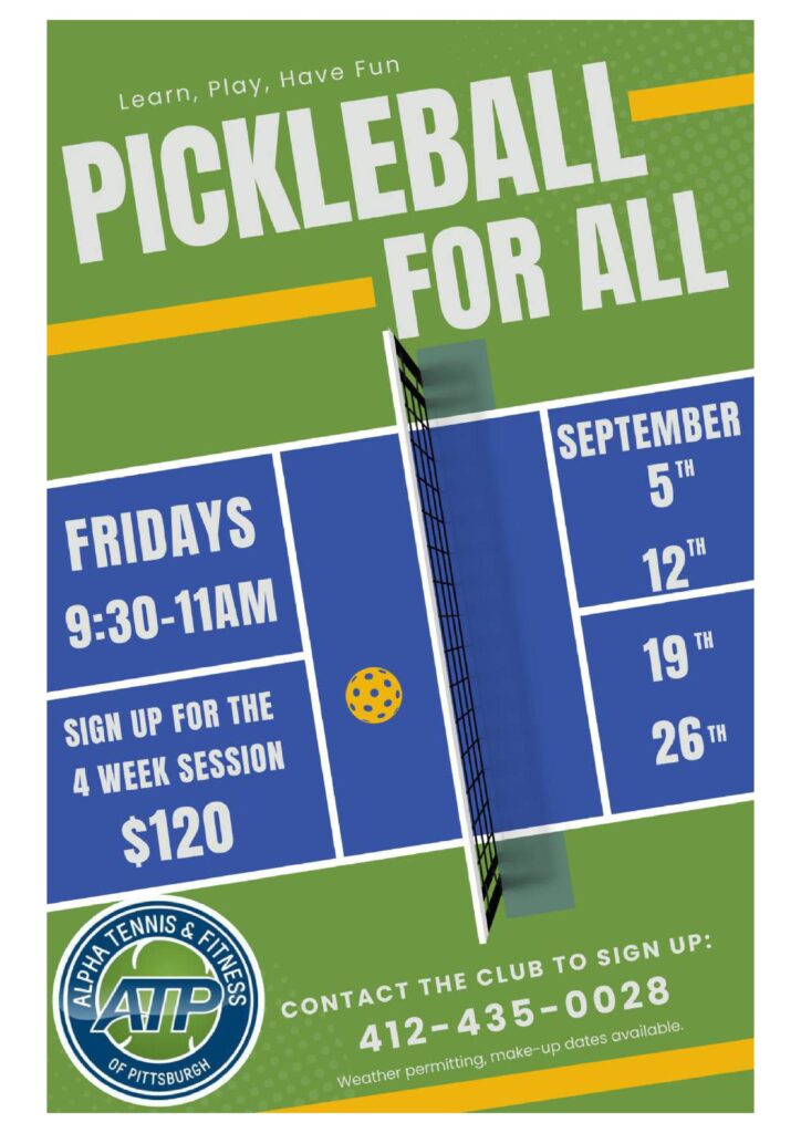 4 weeks of pickleball fun - September 5,12,19 and 26